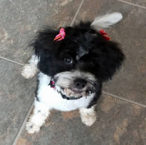 photo of our little Zoey (7/3) after her first ever professional grooming. She has been a wonderful addition to our