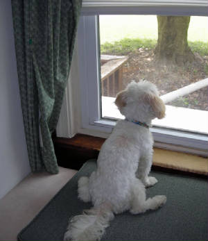 He will be cherished. Next week we will have Mary Jo Duvall's Frankie - Cavachon from Gleneden - staying with us.